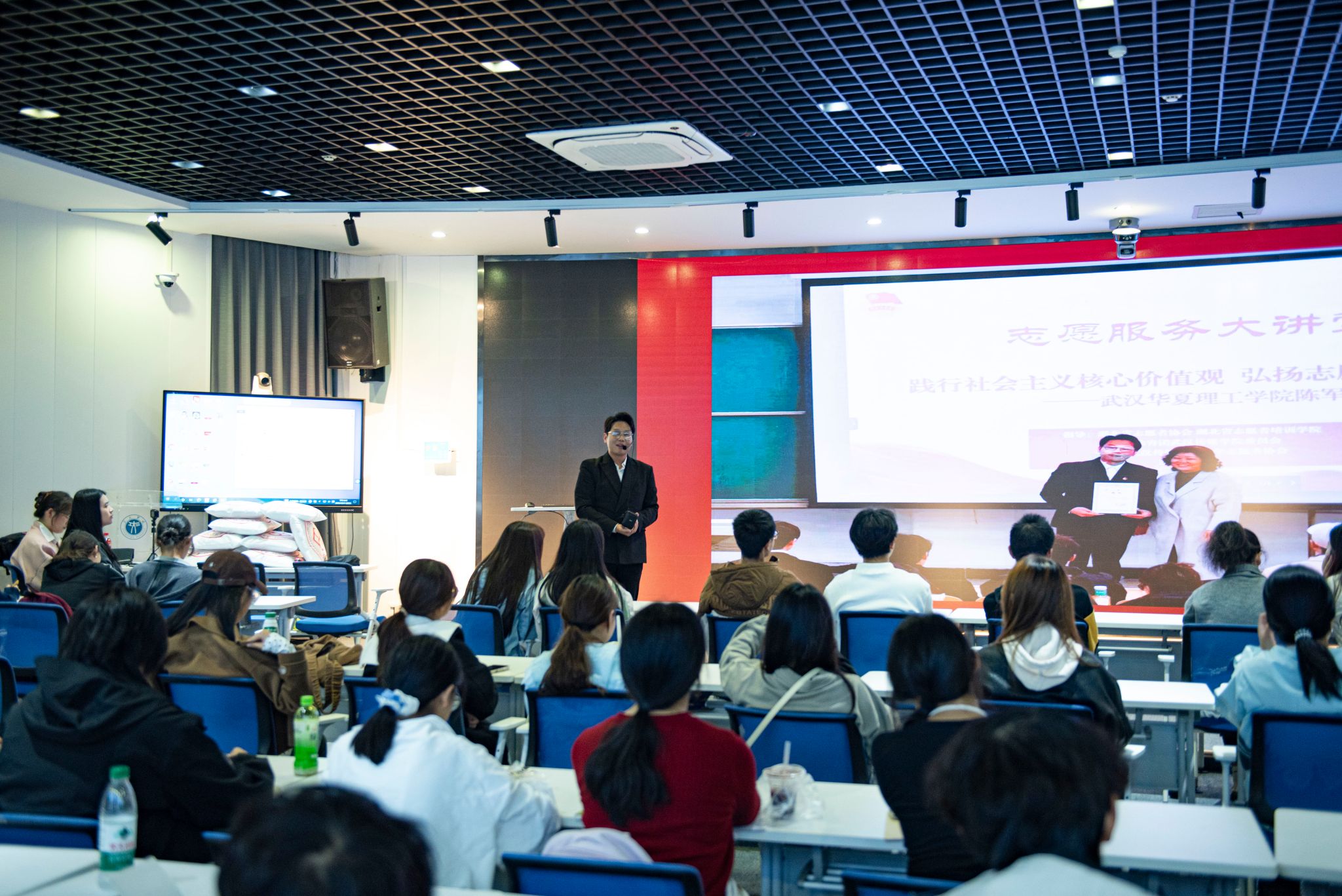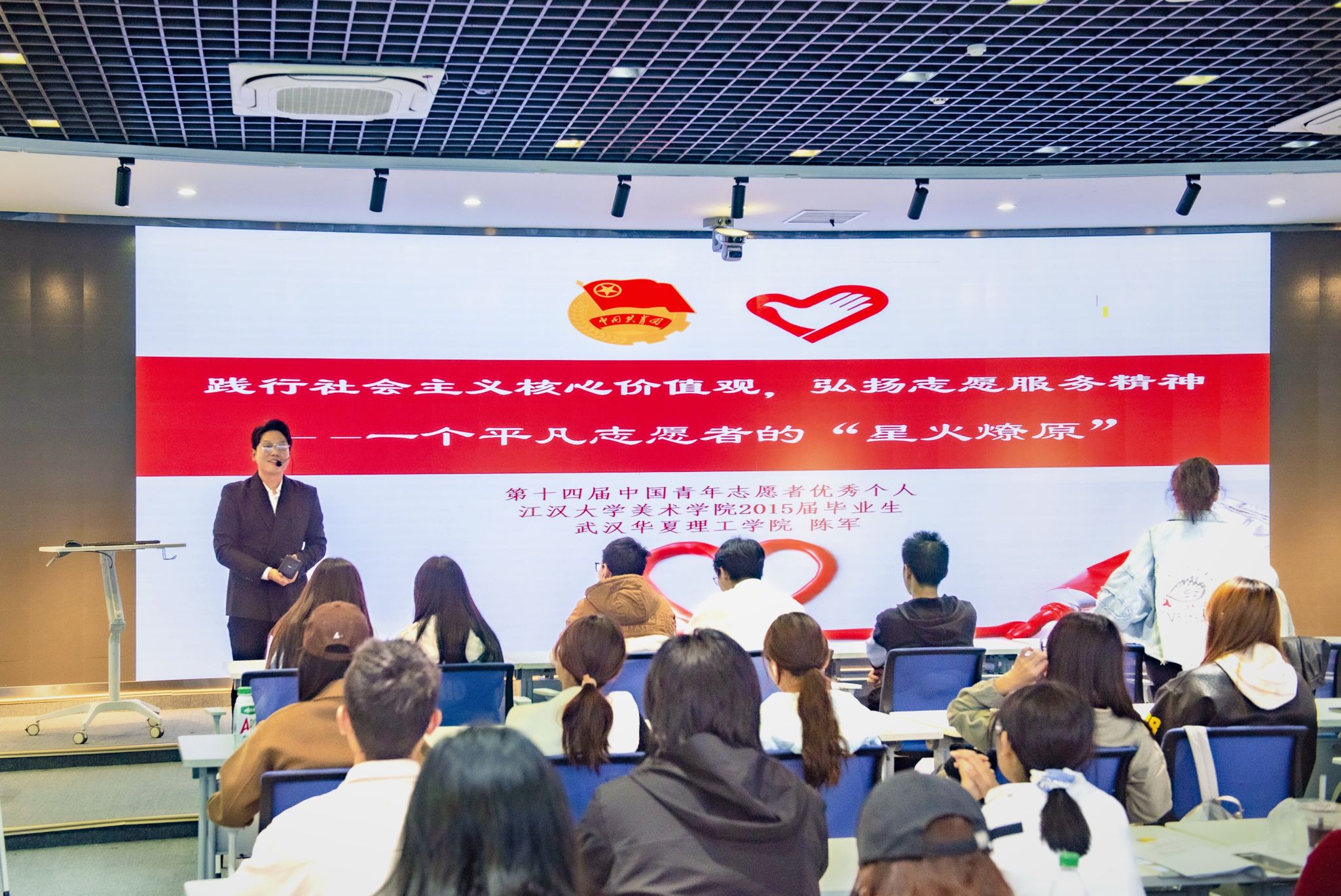 与此同时,陈军老师毫无保留地分享了过往志愿服务实践中所沉淀的珍贵经验,激励着大家在志愿服务的征程中奋勇前行,用实际行动续写新时代的雷锋故事,让志愿服务精神在青春的沃土里绽放出更加绚烂的光彩。陈军老师表示,一个人的力量是有限的,但志愿服务的星星之火,必将为社会燃起燎原的希望。