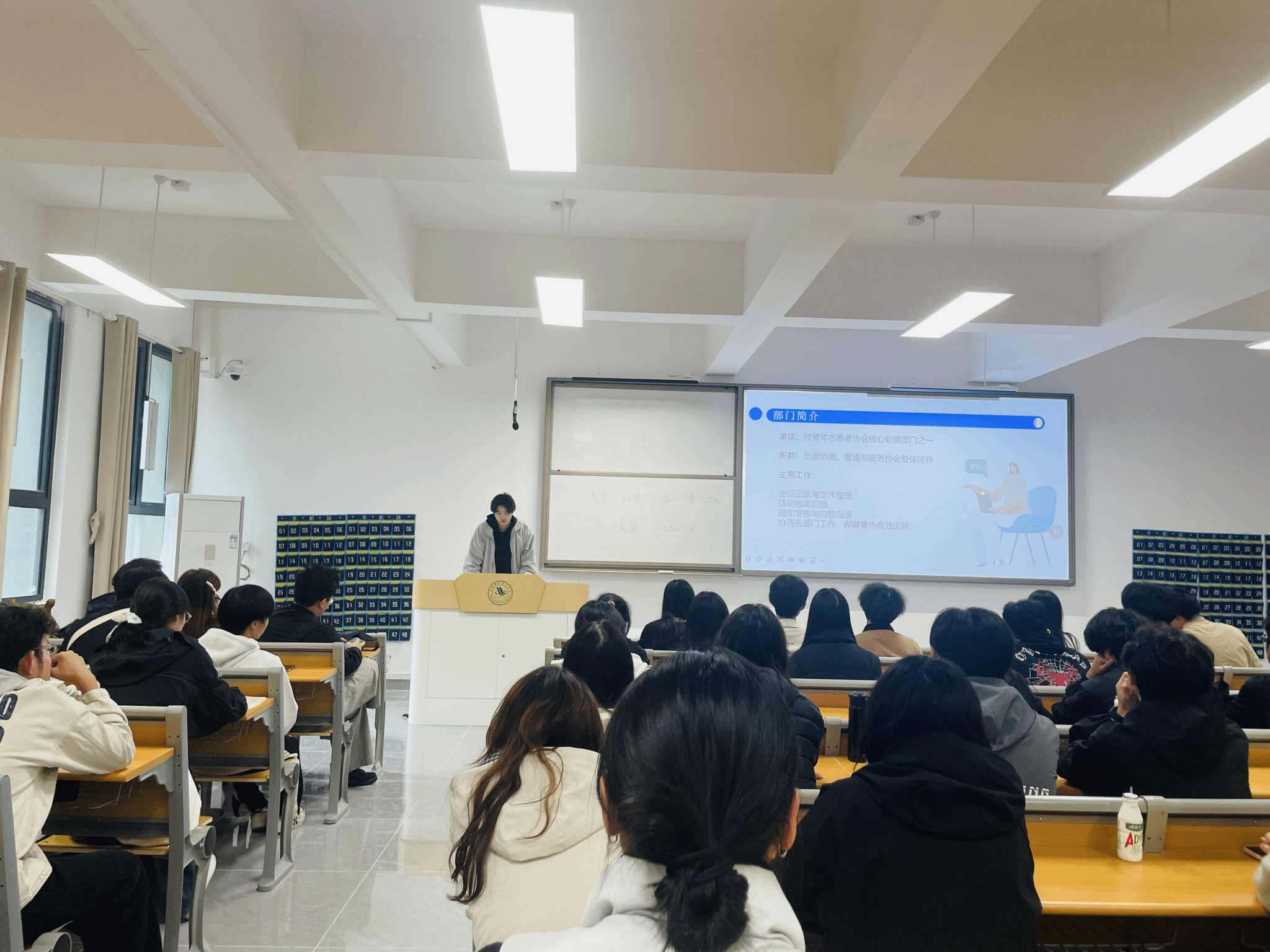 本次大会旨在促进新成员快速融入青协大家庭,明确协会宗旨与部门职责,为后续工作的顺利开展奠定坚实基础。会议在协会主席凌准的主持下开始,第一个环节是指导老师陈军的致词。他对新鲜血液的加入表示热烈欢迎,阐述了青协“奉献、友爱、互助、进步”的核心精神,同时结合“十五五”规划对志愿服务的新要求,强调要聚焦基层治理、民生保障与专业化发展,在乡村振兴、绿色低碳等国家战略中找准定位。他鼓励大家以标准化、项目化服务践行使命,携手共进,用行动传递温暖与力量,为中国式现代化建设贡献青春志愿力量。
