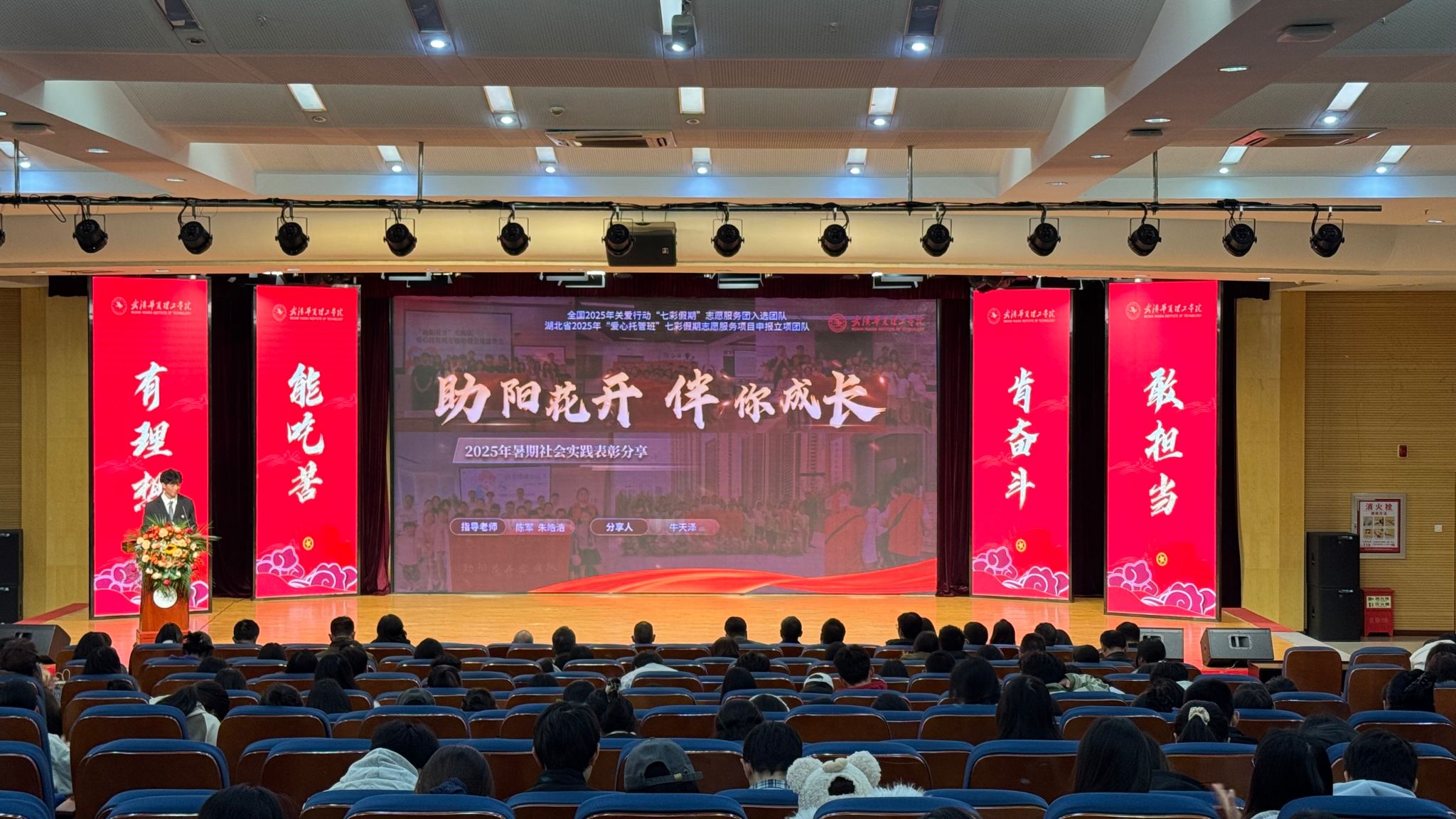 校团委书记潘晶对2025年暑期社会实践活动作总结汇报。2025年暑期“三下乡”社会实践活动以“三轮驱动·三维融合”体系为引领,组建275支团队、8000余名师生奔赴十余省份,并创新推行“4+X”个人实践模式,实现全员覆盖、全程育人。活动聚焦红色传承、乡村振兴、民族团结、科技支教等方向,打造“助阳花开”“励行读书会”红安实践队“青春领航”支教团等一批特色品牌,获国家级、省级荣誉16项,主流媒体报道百余次。下一步,学校将持续优化项目库、基地群、导师团建设,推动社会实践常态化、内涵化、品牌化发展。