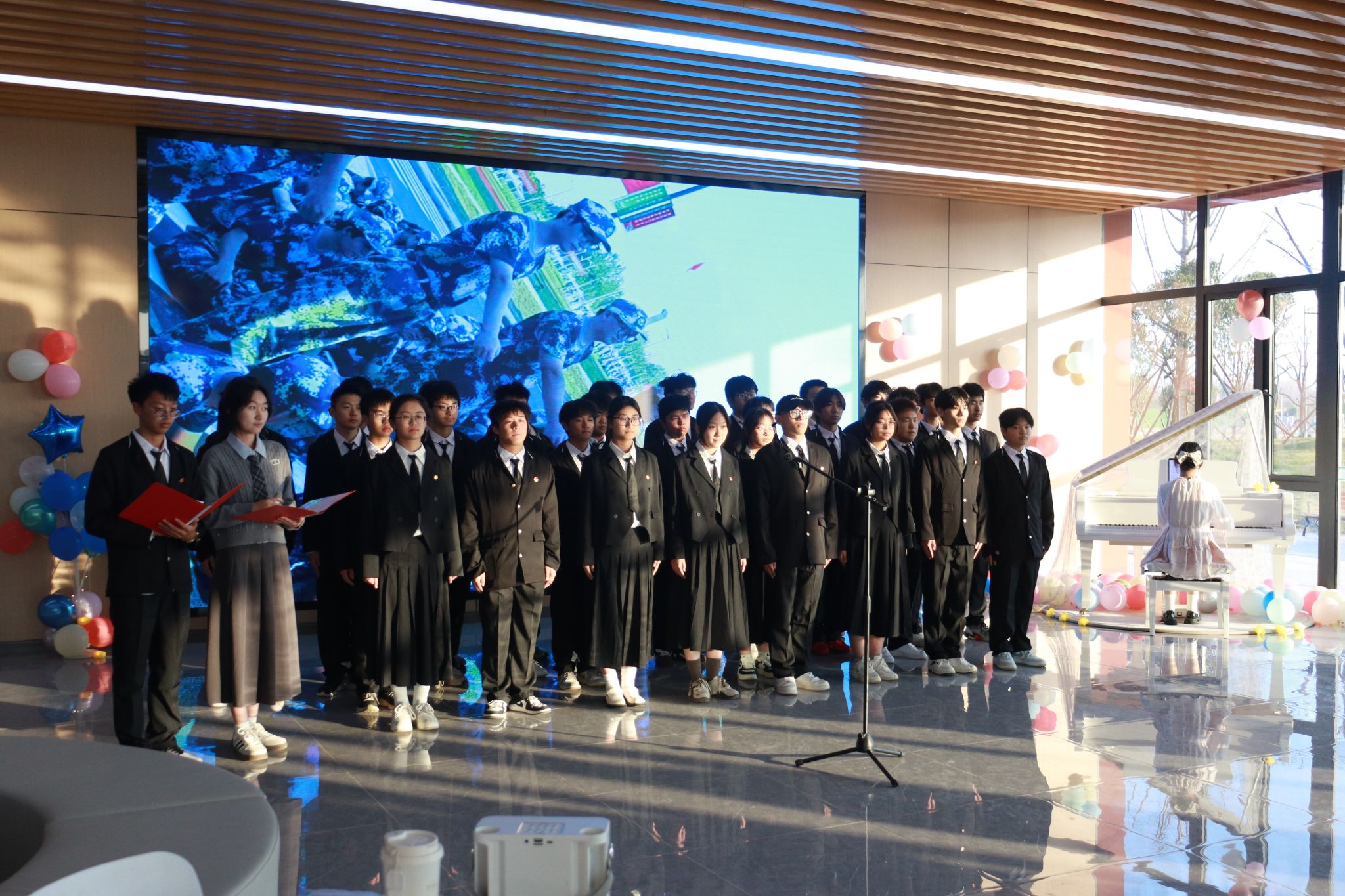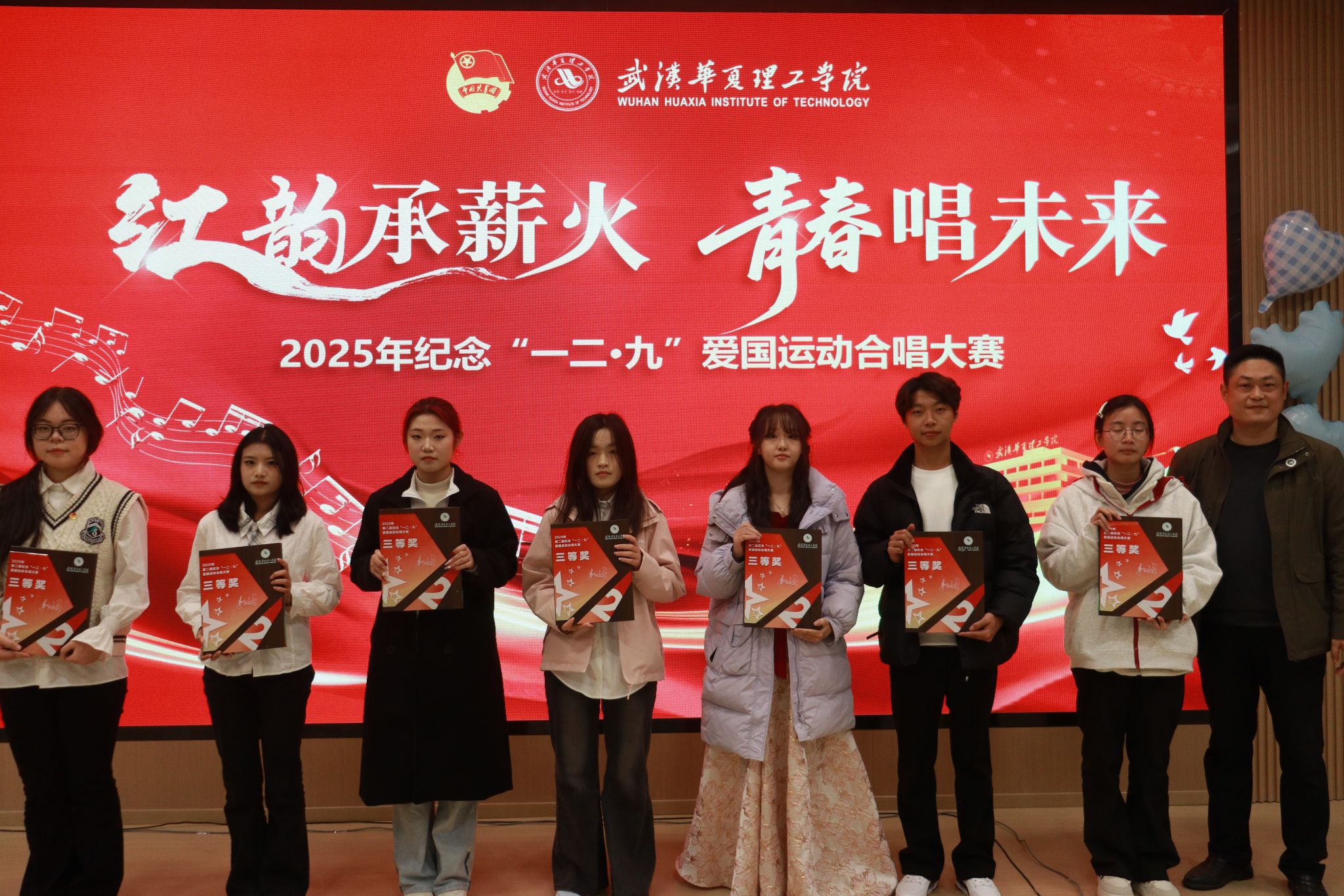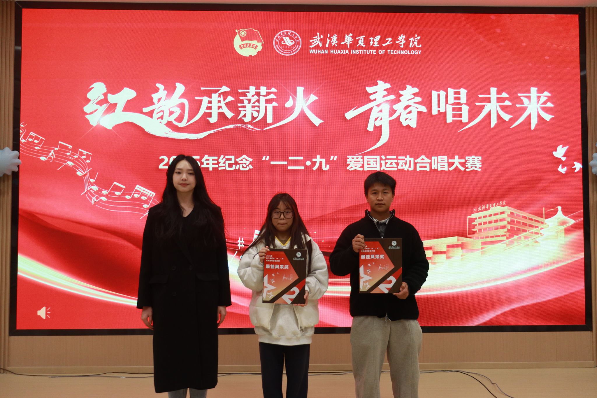 2025年12月5日下午,武汉华夏理工学院梧桐湖校区内歌声飘扬、青春涌动。为纪念“一二·九”爱国运动,学校创新举办了一场别开生面的合唱大赛。以“流动音乐厅”为形式,将校园化为舞台,让红色歌声在冬日校园中回响,为师生带来一场沉浸式的视听与文化盛宴。