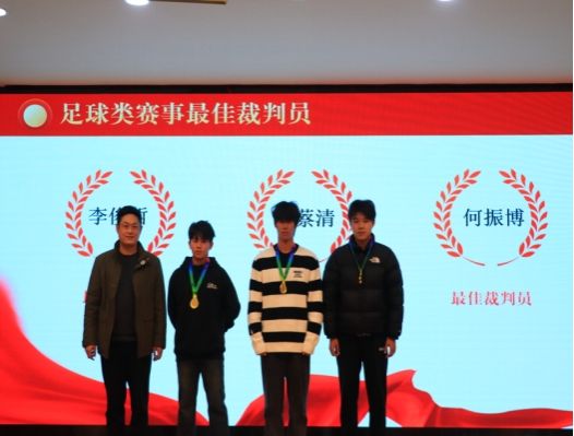 校党委学生工作部部长陈伟老师为足球类赛事最佳射手和最佳裁判员颁奖。