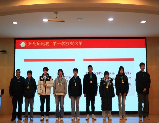 生物与制药工程学院党总支副书记余朝阳为乒乓球比赛前三名获奖人员颁奖。