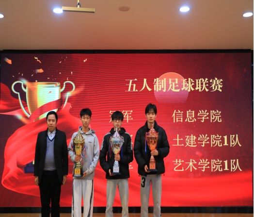 智能制造学院党总支副书记靳路民为五人制足球联赛冠亚季军获奖团队代表颁奖。