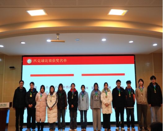 体育学院党总支副书记毛峥毅为匹克球比赛获奖人员颁奖。
