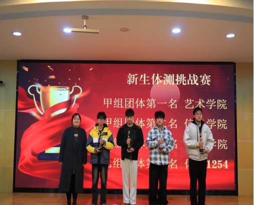校党委学生工作部副部长、团委书记潘晶为新生体质测试挑战赛获奖团队代表颁奖。
