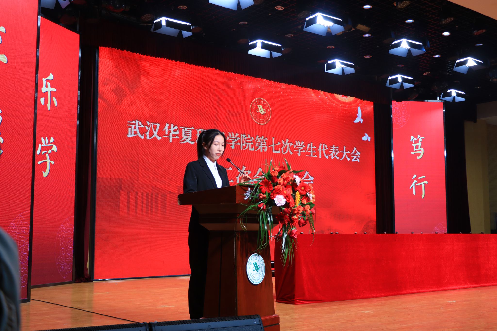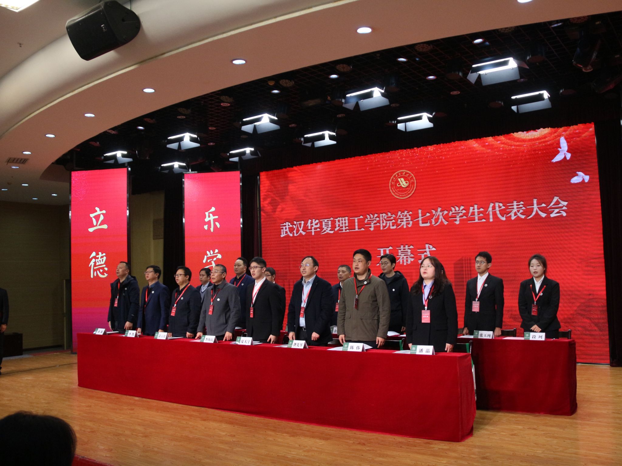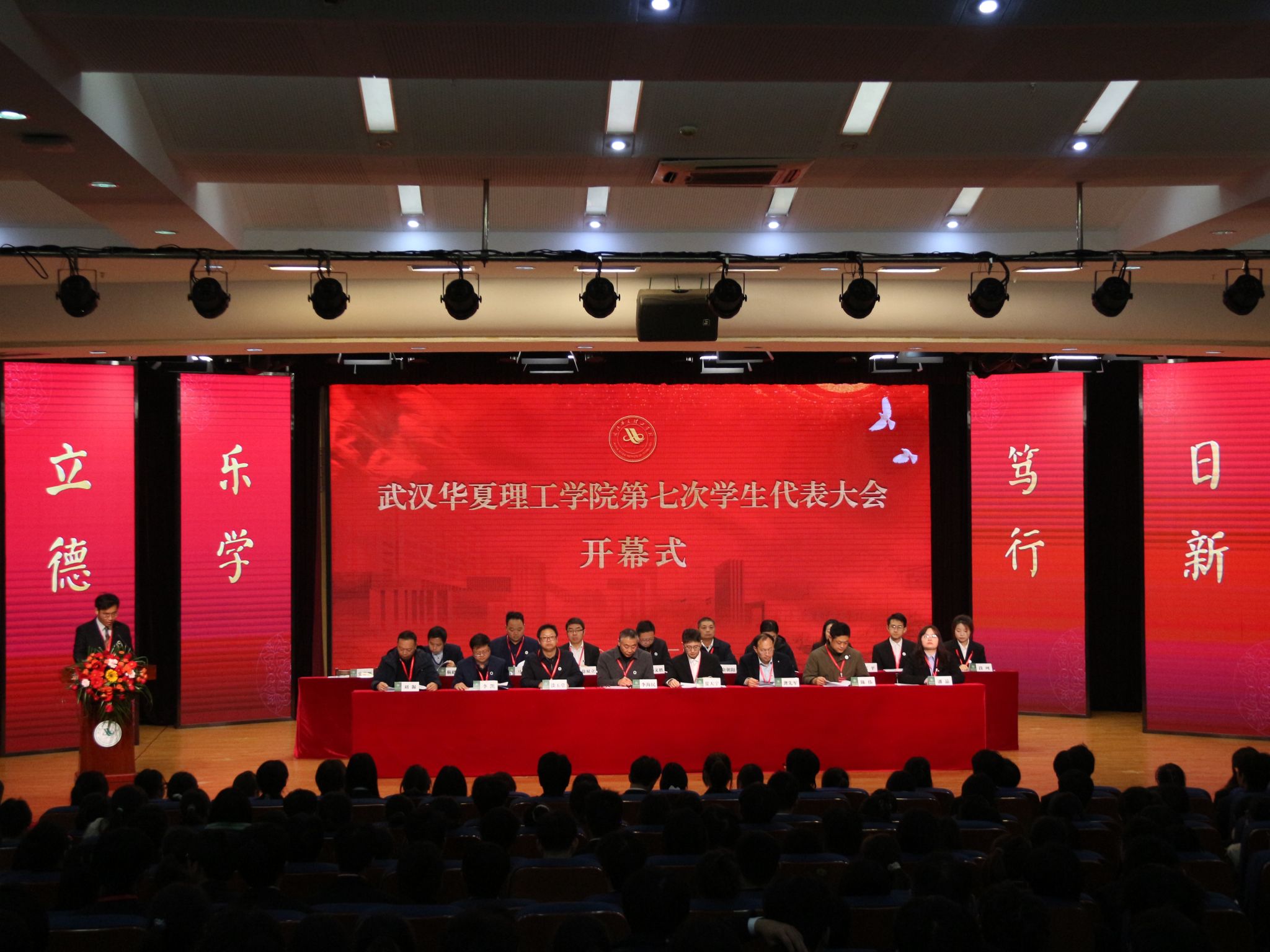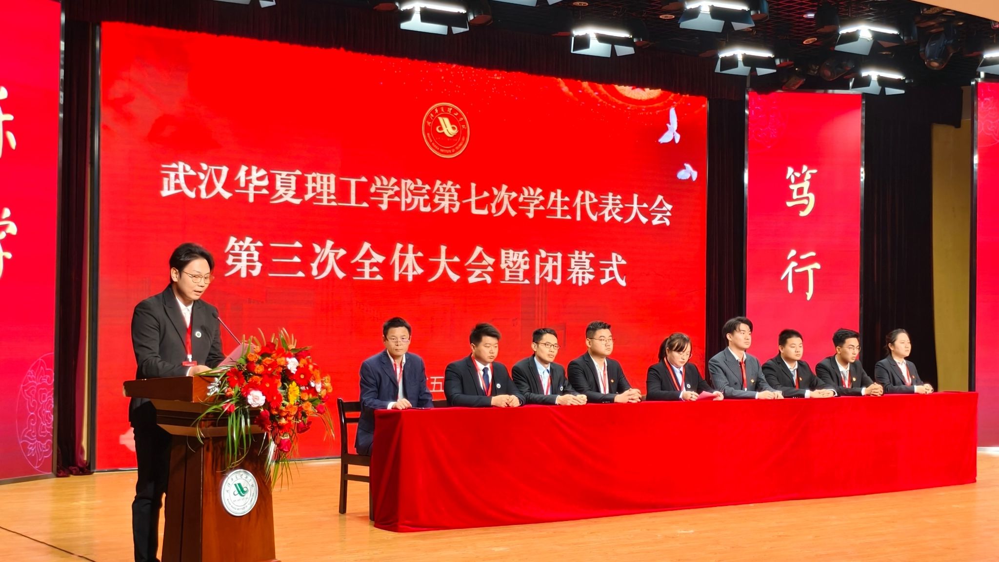 12 月 20 日,武汉华夏理工学院第七次学生代表大会在学术报告厅隆重开幕。省学联驻会执行主席夏天宇,校党委副书记、副校长李海民,相关职能部门负责人,各学院党总支副书记,学工办主任、团总支书记及全体学生代表出席大会。会议由校团委副书记史贵鹏主持。