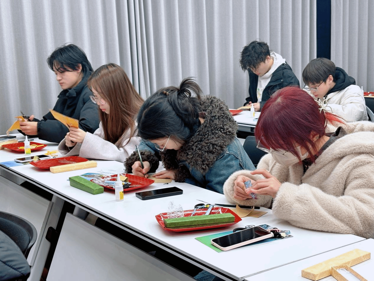 才艺展示过后,活动进入趣味十足的手工制作环节。非遗老师首先登场,为大家详细讲解非遗宋锦的相关知识,并通过互动问答的方式,让大家对宋锦有了更深入的了解。随后,大家分组体验制作非遗宋锦挂件,工作人员分发材料后,老师耐心讲解制作步骤,青年们纷纷动手,发挥创意,精心制作属于自己的宋锦作品。紧接着,“一马当先”新春灯笼制作环节也拉开帷幕,老师边示范边讲解,青年们认真聆听、积极动手,不一会儿,一个个造型独特的马年灯笼便在大家手中诞生。