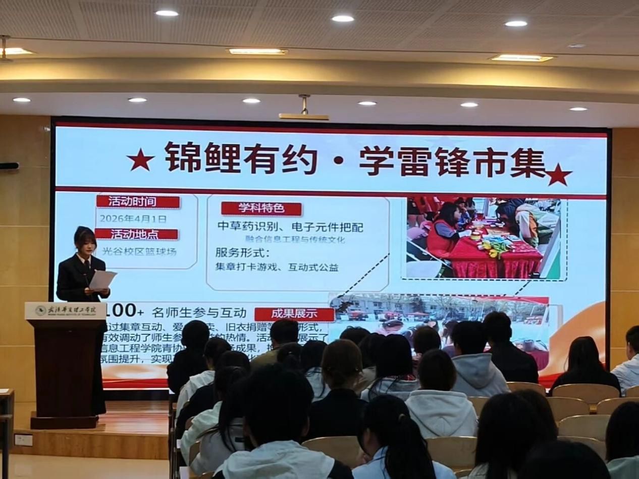 为深入贯彻落实习近平总书记重要思想,进一步弘扬新时代雷锋精神,校团委于4月16日中午12:00组织开展了2026年“学雷锋志愿服务月”答辩活动。此次活动旨在全面回顾和总结各学院青年志愿者协会在三月雷锋月期间开展的志愿服务工作,展示特色成果,交流实践经验,进一步推动学雷锋活动常态化、长效化开展。校团委书记潘晶、宣传部部长陈军老师及学院通知书记代表担任评委,各青年志愿者协会代表80余人一同参会。
