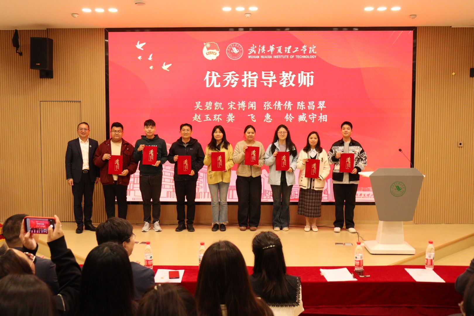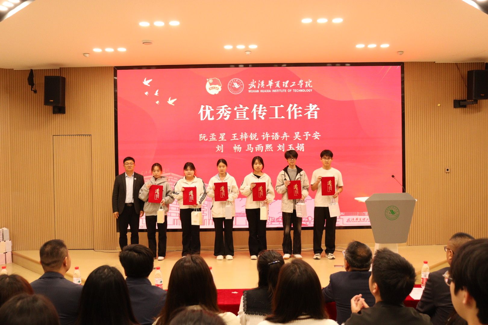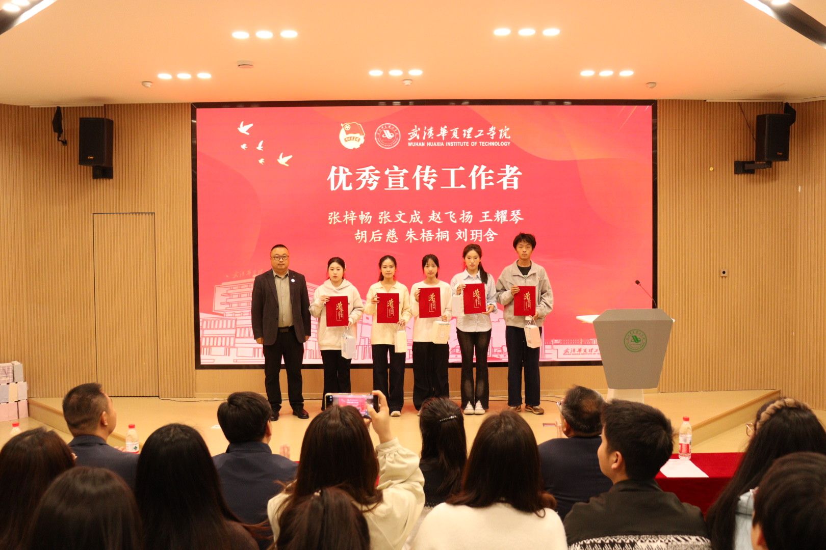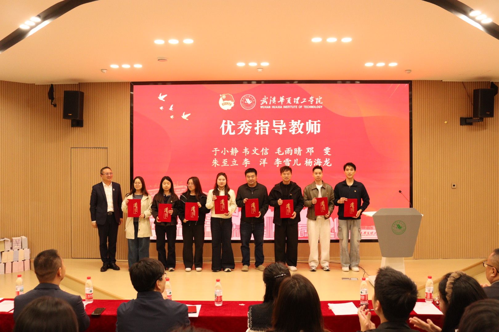 为全面总结 2026 梁子湖半程马拉松志愿服务工作成效,表彰先进典型、弘扬志愿精神,4 月 22 日晚,赛事志愿服务总结表彰大会在梧桐湖校区教学楼一楼多功能报告厅隆重举行。副校长、梧桐湖校区管委会主任胡水兵,梧桐湖校区管委会副主任项金辉、张城芳、黄程,梧桐湖校区管委会综合办公室主任张勇、综合办公室副主任孙华、学生服务中心主任郝志康、校团委副书记史贵鹏,全体辅导员及志愿者代表参加本次大会。
