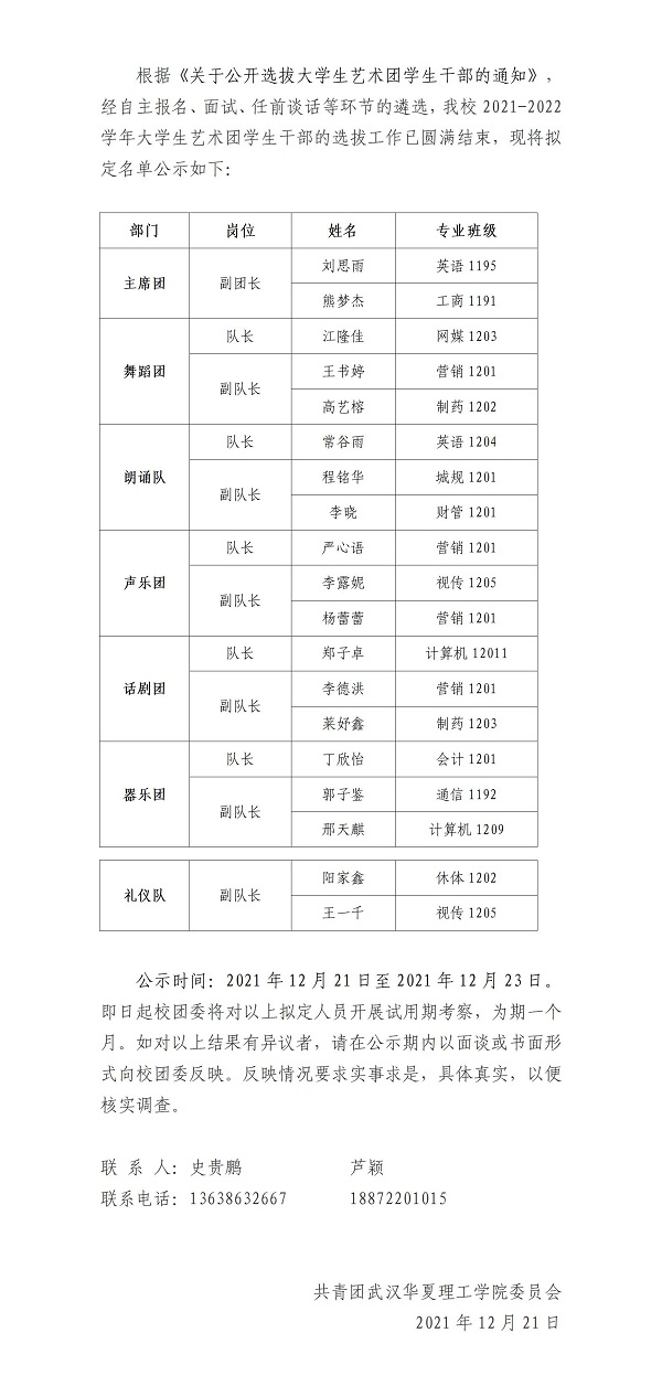 下一条:关于武汉华夏理工学院学生会学生干部拟录用名单公示