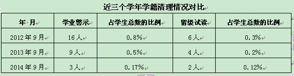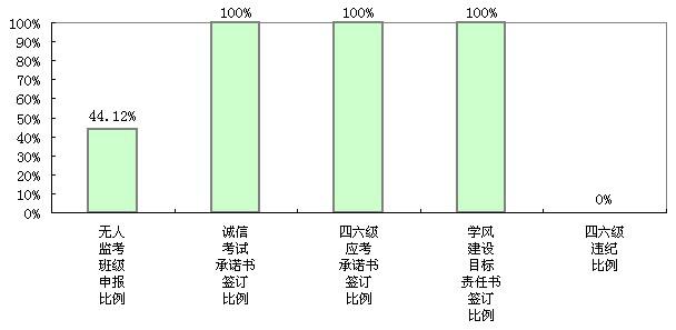 加强诚信教育,签订学风建设目标责任书和诚信承诺书。承诺书的签订有以下几种类型:申报无人监考班级的班级,签订教务处下发《武汉理工大学华夏学院学生诚信考试承诺书》;没有申报无人监考班级的班级签订结合系实际而自定的《机电工程系学生诚信考试自律承诺书》;有三四六考试的班级签订教务处下发的《武汉理工大学华夏学院英语三、四、六级考生诚信应考承诺书》。全系52个班级,签订《武汉理工大学华夏学院学生诚信考试承诺书》15份,签订《机电工程系学生诚信考试自律承诺书》37份,签订《武汉理工大学华夏学院英语三、四、六级考生诚信应考承诺书》41份,真正做到了全覆盖。一年来21个班级申报无人监考班级,考试零违纪。学籍清理情况大幅度好转,在2013年9月学籍清理中,我系学生受到学业警示9人,占学生总数的比例为0.5%,留级试读4人,占学生总数的比例为0.2%。在2014年9月学籍清理中,我系学生受到学业警示3人,占学生总数的比例为0.17%,留级试读2人,占学生总数的比例为0.12%。