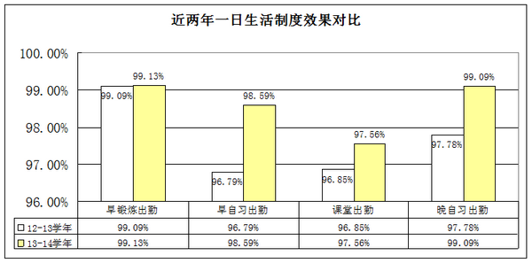 开展提前10分钟进教室活动,起到一石二鸟的效果,降低了迟到情况,提高了出勤率;同时设立曝光台,缺课就上榜,进一步促进了学生到课学习的积极性。一年来,监控零迟到班级课堂302次,存在迟到现象的课堂43个,涉及到学生23353人,迟到103人,迟到率0.44%;抽查学生课堂1268个,涉及到学生100435人,学生课堂出勤率为97.56%,其中出勤率在100%的课堂375个,99%以上的课堂442个。