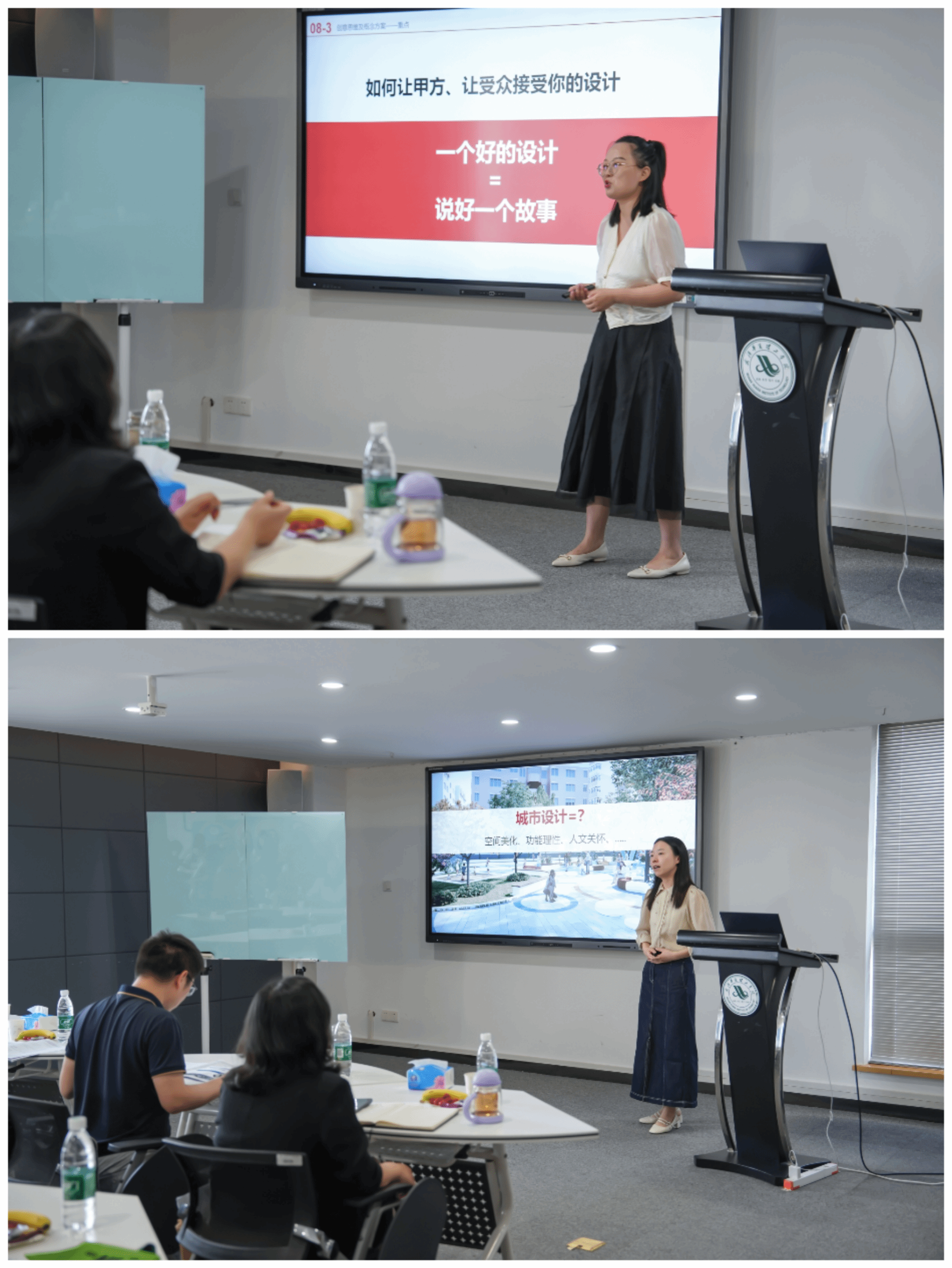 紧接着进入试讲环节。来自土建学院的张力文老师选取城市设计课题,生动阐述了 “城市设计的内涵”,详细讲解了城市设计的四个内涵以及与相关学科的关系,并进行小结。紧接着,艺术学院的刘瑶老师带来 “商业空间设计” 的试讲,涵盖商业空间设计课程中的商业场所环境要素、展陈类商业空间设计等多方面内容。