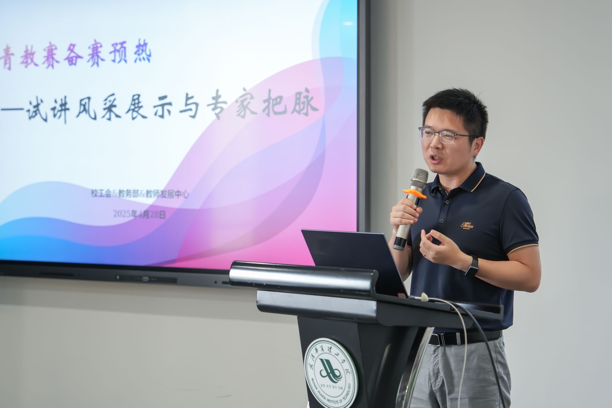 4 月 28 日下午,校工会联合教务部、教师发展中心在1401会议室成功举办了青教赛备赛预热活动 ——“试讲展示风采和专家把脉”。此次活动特别邀请到第七届全国高校青年教师教学竞赛理科组一等奖获得者高达教授,为我校两位即将参加省赛的教师进行备赛试讲指导。学校副校长李猜,校长助理、工会主席李海燕,教师发展中心副主任戴琰出席活动,众多青年教师也积极前来观摩学习,现场气氛热烈。活动由校工会常务副主席梅燕主持。