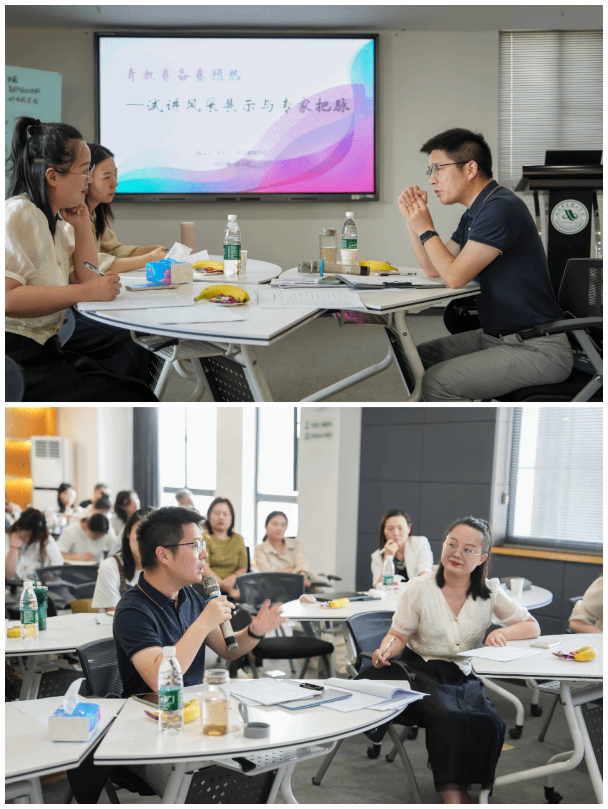 两位老师试讲结束后,高达教授分别进行了精准且专业的点评。他从教学内容的组织、教学方法的运用、课堂互动的技巧等多个维度提出了宝贵建议,为两位参赛教师进一步优化教学提供了清晰方向。在交流环节,两位老师就青教赛前期准备过程中遇到的困惑和问题与高达教授深入探讨,高教授一一耐心解答,现场互动频繁,思维碰撞出耀眼火花。