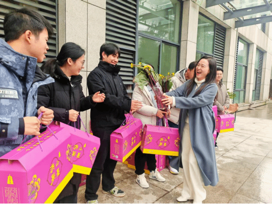 收到这份别具心意的礼物,老师们纷纷表达惊喜与感动:“礼物非常用心!洪山菜薹是咱们湖北的‘家乡味’,元旦收到它,一下子就有过节的喜悦和温暖。”“菜叶上还挂着水珠,手里凉丝丝的,心里却热乎乎的。学校总是惦记着我们,一年忙碌,顿时觉得一切都值得。”