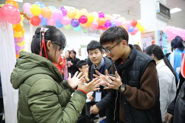 在二楼,各学院展区特色鲜明,精彩纷呈。商学院的踢毽子游戏,让师生玩得不亦乐乎;信息与工程学院的拳皇、魂斗罗等街机游戏受到许多同学的追捧;生物与制药工程的爆米花、烤肠则带师生们重温了童年的味道;机电学院的彭进城同学耐心地对每一个前来体验游戏的领导和同学们讲解叠纸盒游戏规则;土木建筑工程学院的“抢凳子”游戏让全场师生体验小时候的快乐。