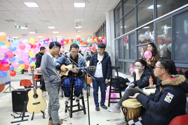 晚上18点30分,游园会活动正式开始。李园食堂一楼以“社团嘉年华”为活动主题,我校8个社团成员在各自场地与同学们进行互动。动漫社的cosplay独树一帜,尽显童真童趣;华夏手工坊现场制作的蛋雕、纸花及其他各种手工艺品美轮美奂,让参观的同学们赞叹不已;Zero音乐坊吉他协会深情的弹唱萦绕整个食堂,众多粉丝驻足聆听;法语社成员们的简单法语识记吸引了不少同学当场入社;华夏跆拳道协会的现场跆拳道表演引来阵阵呐喊欢呼声;笛箫协会和书画社则闹中取静,以中华文化独有的魅力,在一片喧闹中吸引同学驻足忘返。