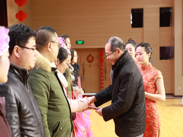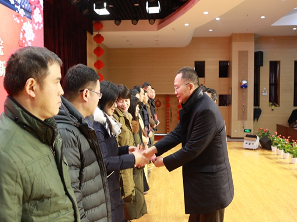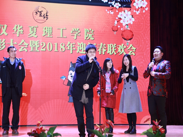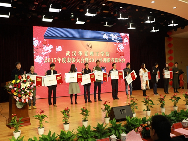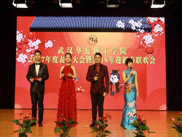 金鸡踏雪去,玉犬迎春来。1月26日下午,我校2017年教职工表彰大会暨2018年迎新春联欢会在综合楼学术报告厅隆重举行。当代集团副总经理、武汉华夏理工学院监事长刘家清,当代教育集团董事长杜晓玲,当代教育集团副董事长、武汉华夏理工学院监事于恩祥,我校董事长张晓东,全体校领导与700余名师生欢聚一堂,共同迎接新年的到来。