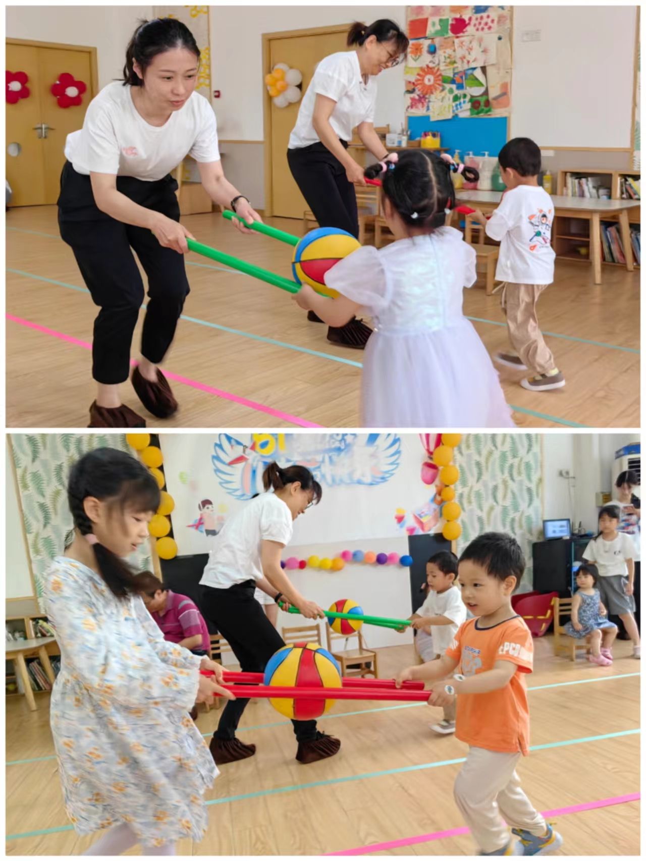 携手同行,一定能赢,我们的大筐子可以装下所有彩球。