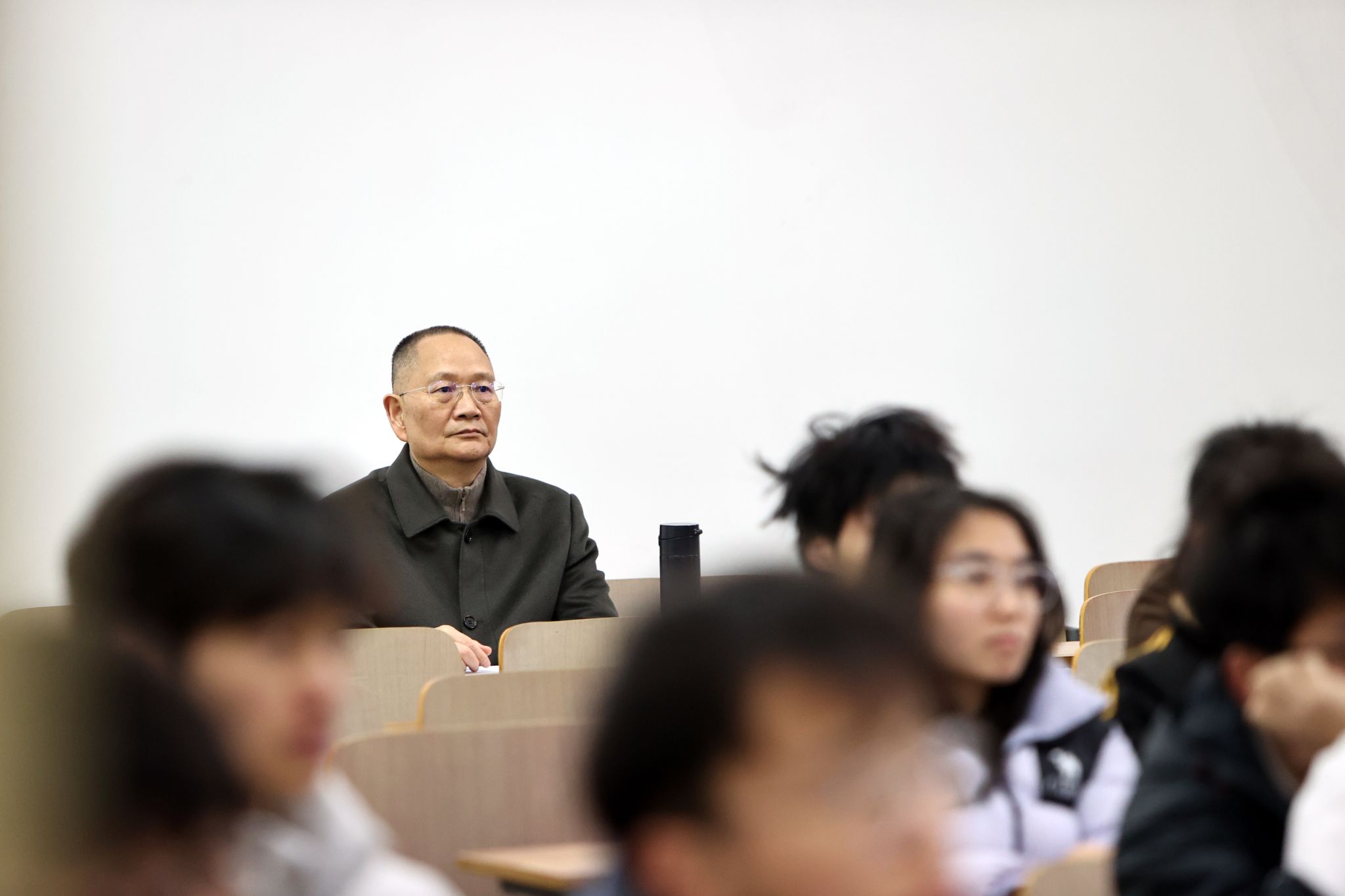 校党委书记丁德智在305教室听取孙浩老师讲授的《习近平新时代中国特色社会主义思想概论》课程。课前,丁德智仔细翻阅了课程教材和教案。听课过程中,他密切关注教师的授课内容和学生的听课状态,并认真做了记录。课后交流时,他建议老师在授课时多结合实际,用鲜活的案例吸引学生,实现师生思想上的同频共振。