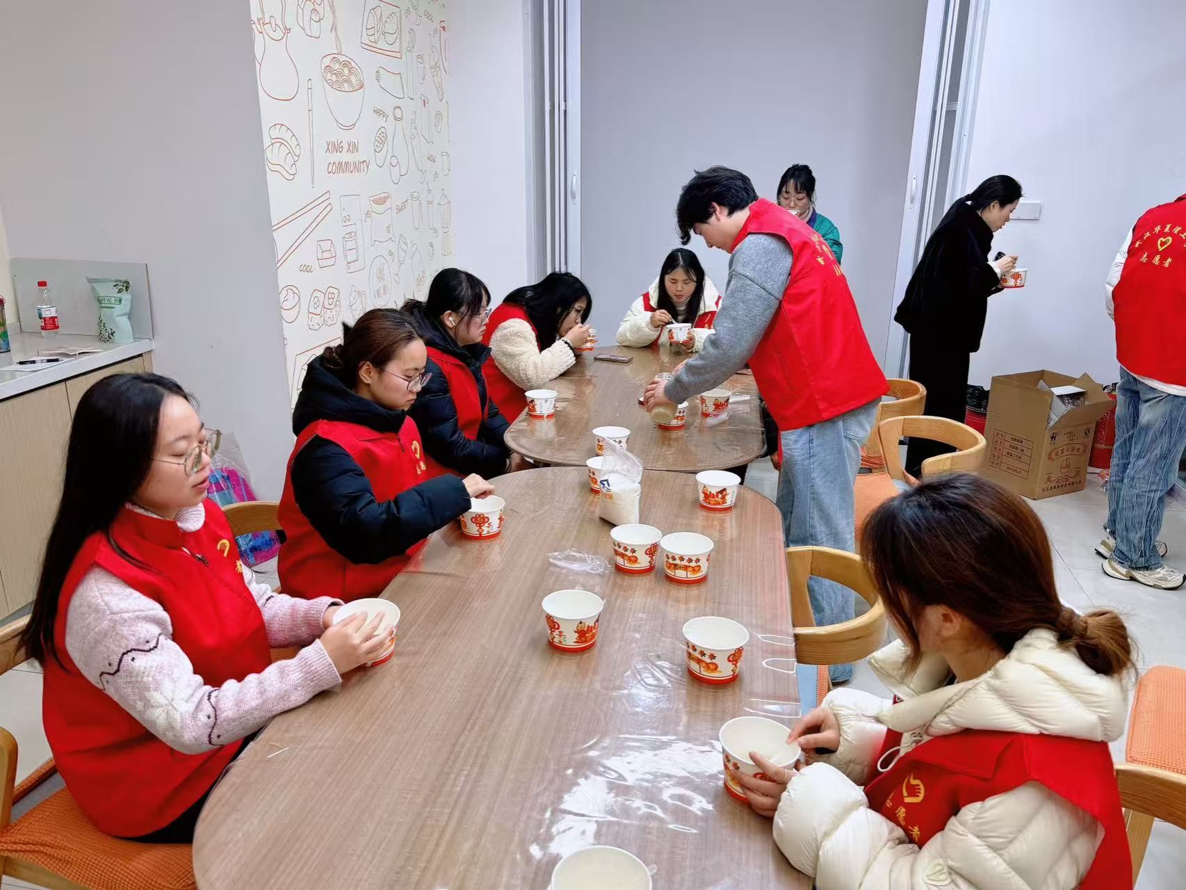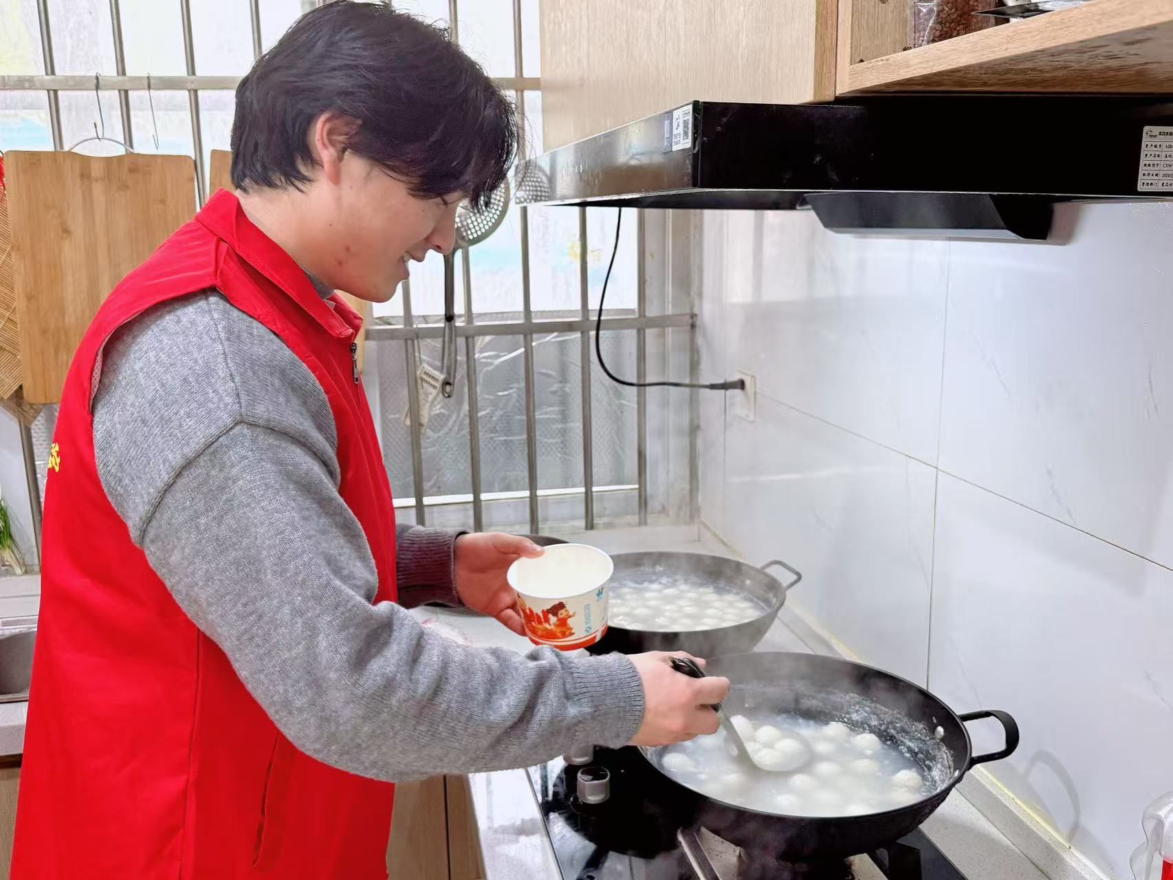正值元宵佳节,社区居民与大学生志愿者们还一起煮汤圆、品汤圆,用实际行动诠释“奉献、友爱、互助、进步”的志愿精神,让社区充满温情。