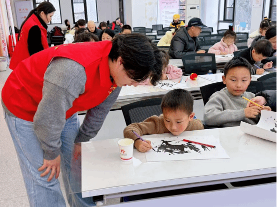 活动当天还同步开展了特色志愿服务活动。志愿者带领社区儿童体验非遗吹墨画,讲解创作技巧与艺术奥妙,让孩子们在趣味中感受传统文化魅力。在花灯制作环节,志愿者与孩子们结对协作,一盏盏创意花灯承载着巧思与欢笑,传递着文化薪火与志愿情怀。