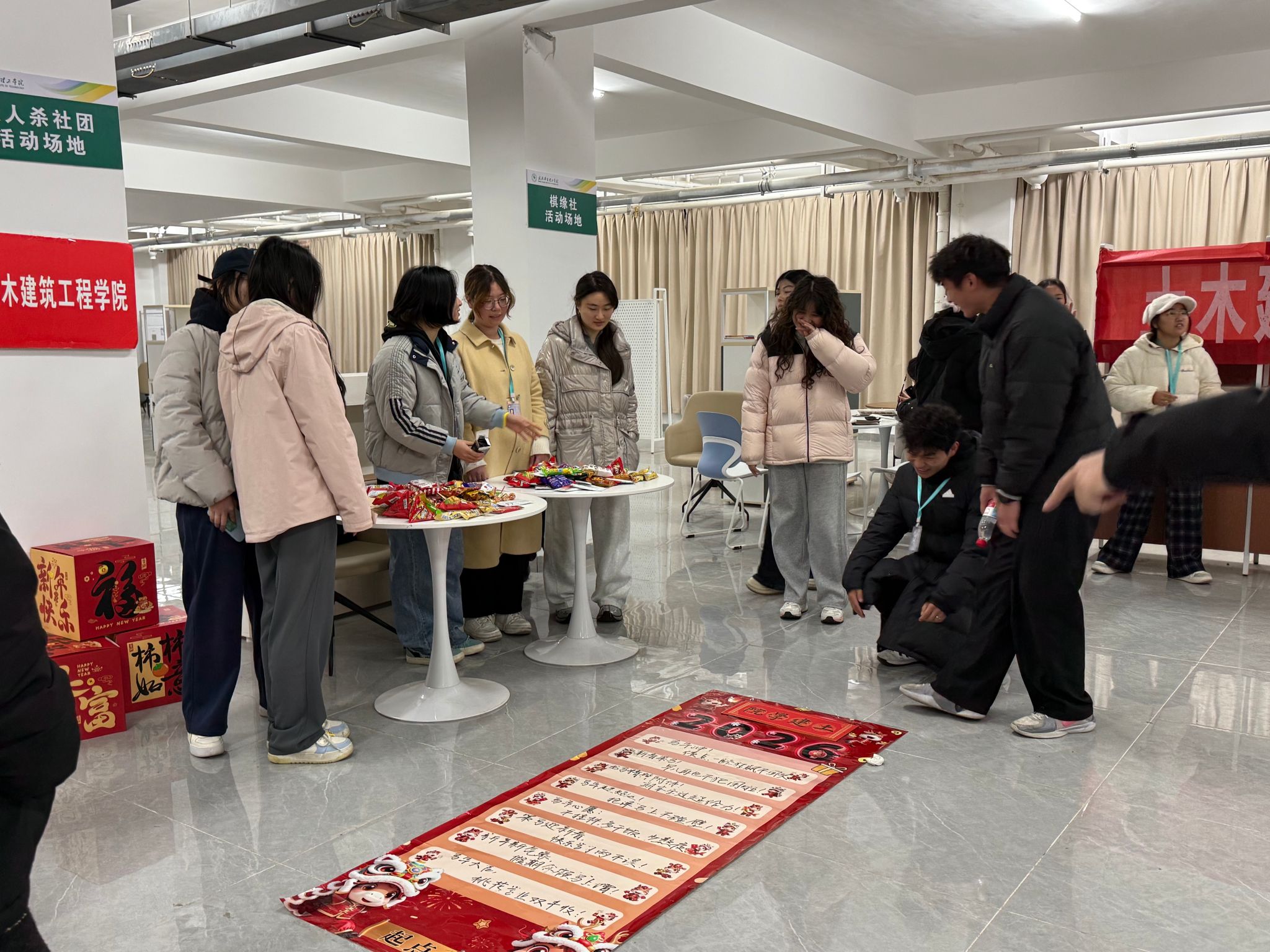 团队默契比拼区则充满竞技乐趣,设置了许多娱乐互动游戏,同学们结伴组队、默契配合,在脑力比拼与协作互动中增进情谊、释放活力,现场欢声笑语不断,充分展现了学子们的青春风采与团队凝聚力。