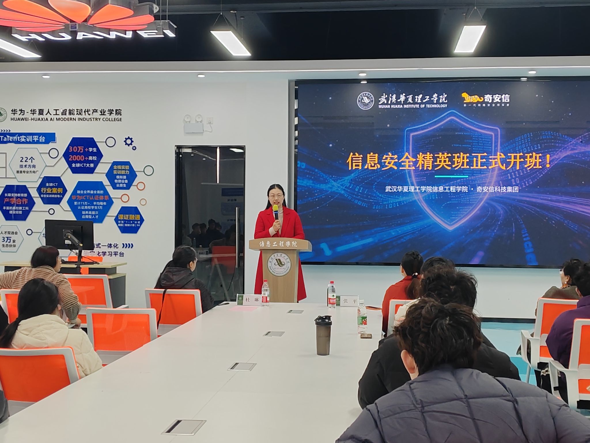 3月9日上午,我校华为-华夏人工智能现代产业学院携手奇安信科技集团,在光谷校区信息工程楼412实验室举行信息安全精英班开班仪式。校企双方领导、授课教师代表及全体精英班学员齐聚一堂,共同见证这一重要时刻,开启校企协同育人新篇章。