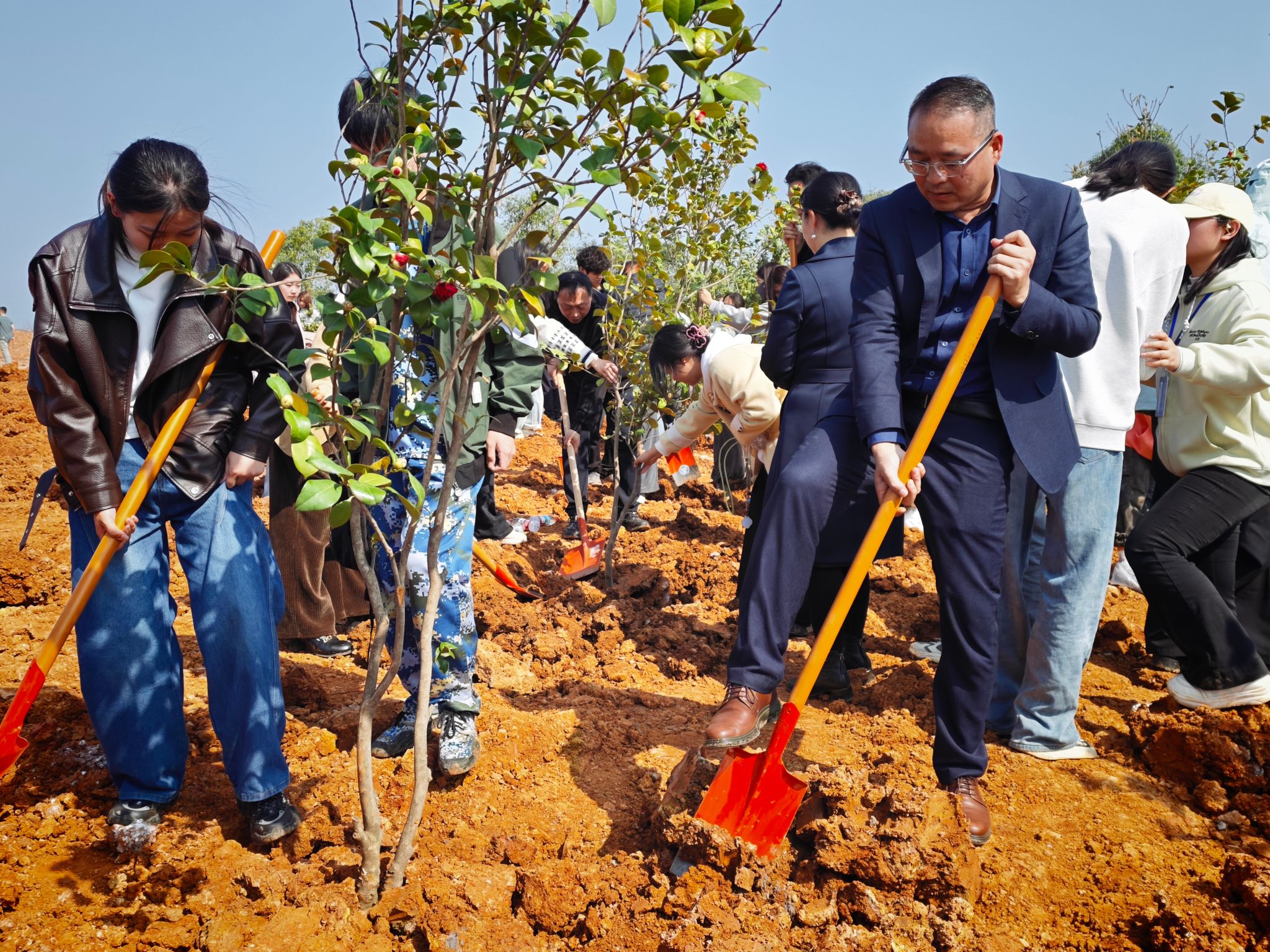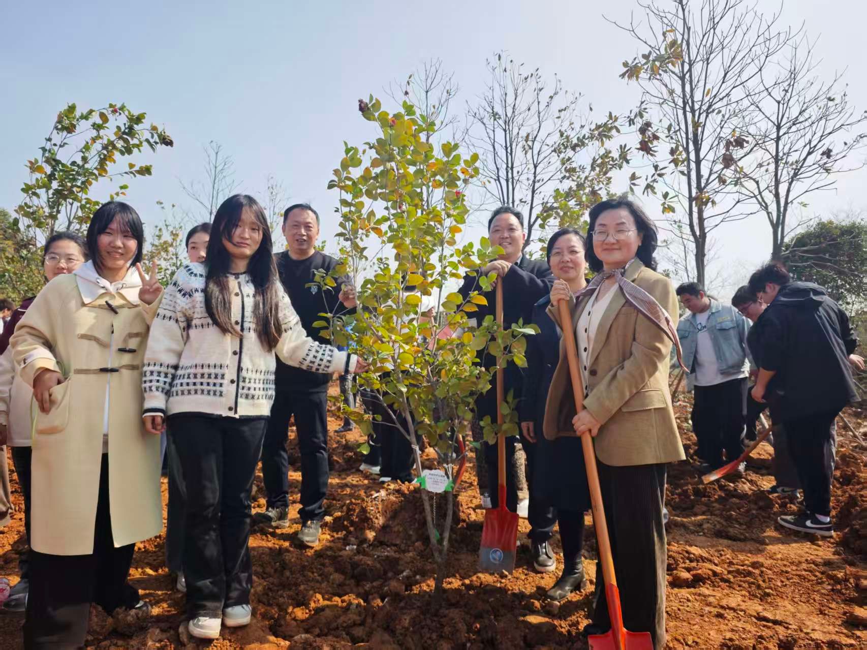 挥锹培土添新绿 校领导与200余名师生共植“希望林”