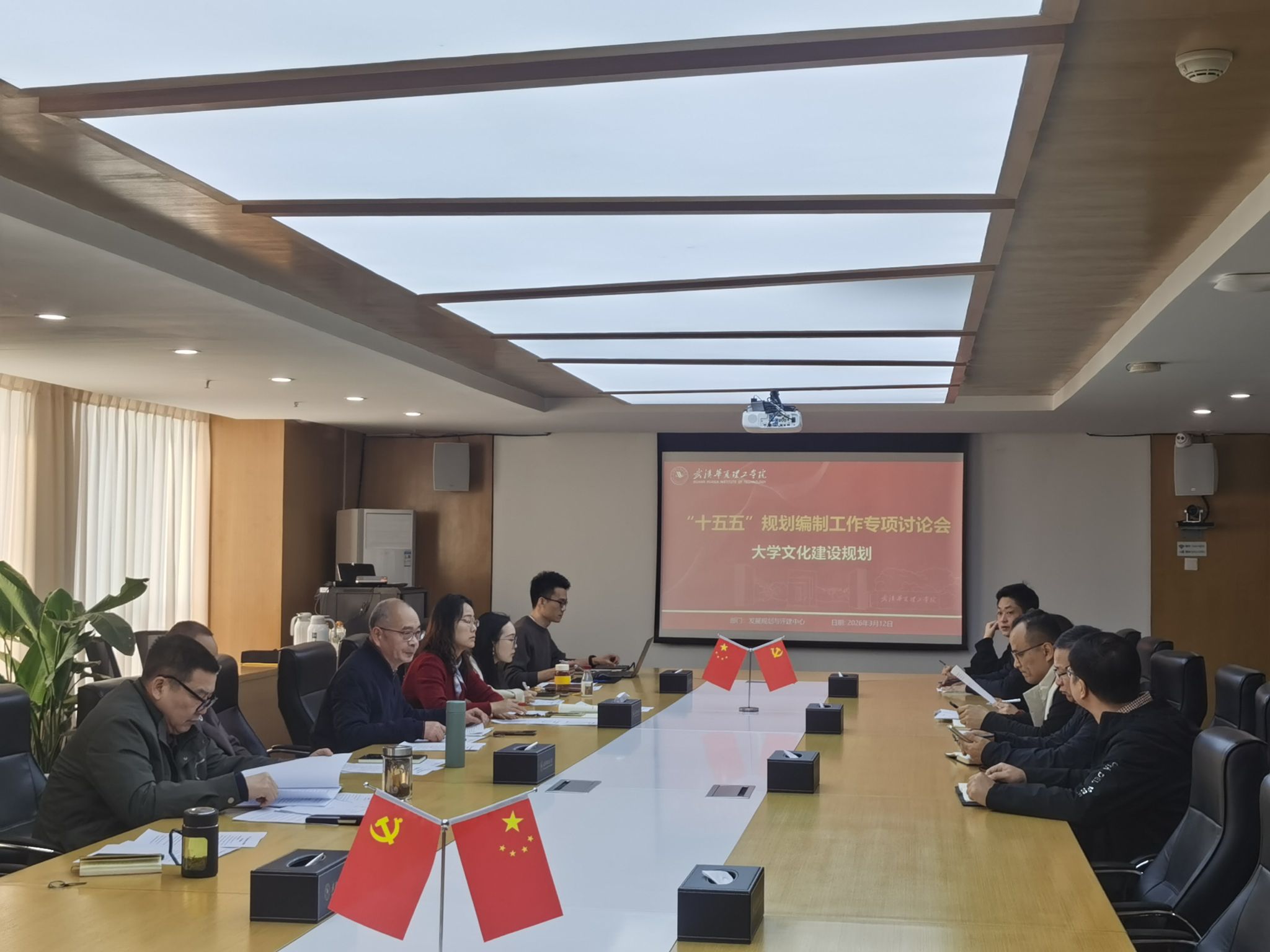 3月13日下午,学校在综合楼1401会议室召开“十五五”大学文化建设规划专题研讨会,深入研讨未来五年校园文化建设的发展蓝图。校长吴永桥,党委书记丁德智,副校长丁成忠,党委副书记、副校长李海民出席会议。发规与评建中心、党委宣传部、党政办公室、图书馆、教学督导办公室、学生工作部、团委、工会等相关部门负责人参加会议。会议由丁成忠主持。