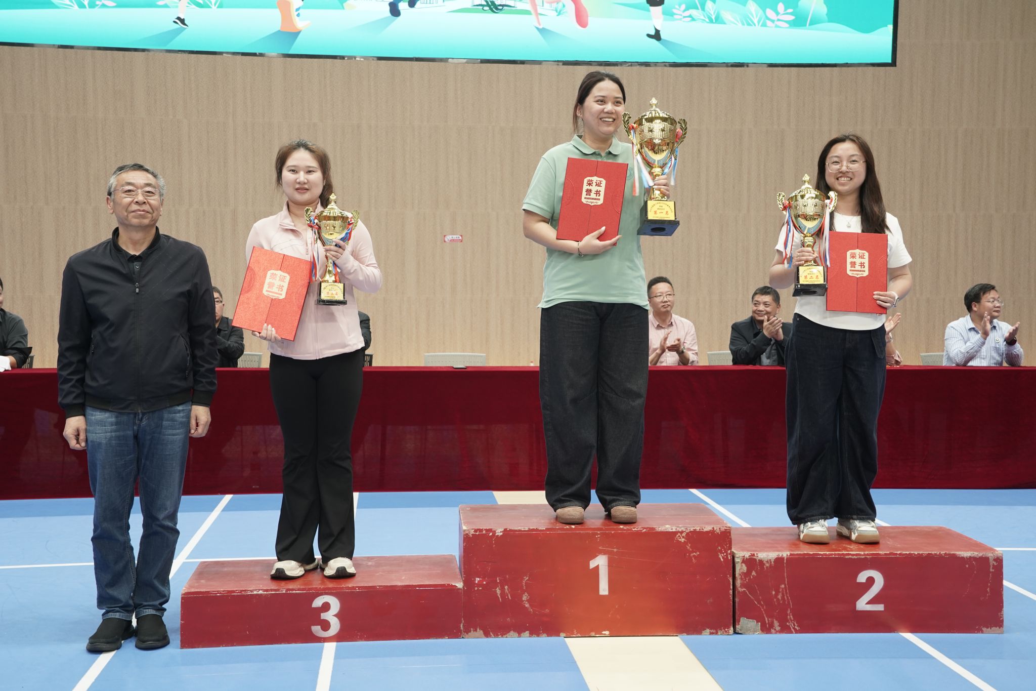 经过紧张激烈的角逐,下午五时二十分,运动会圆满完成各项赛程。商学院、信息工程学院、智能制造学院分获团体总分前三名,商学院与体育学院同获“体育道德风尚奖”。闭幕式上,校领导依次为获奖集体和个人颁发了证书、奖杯等。