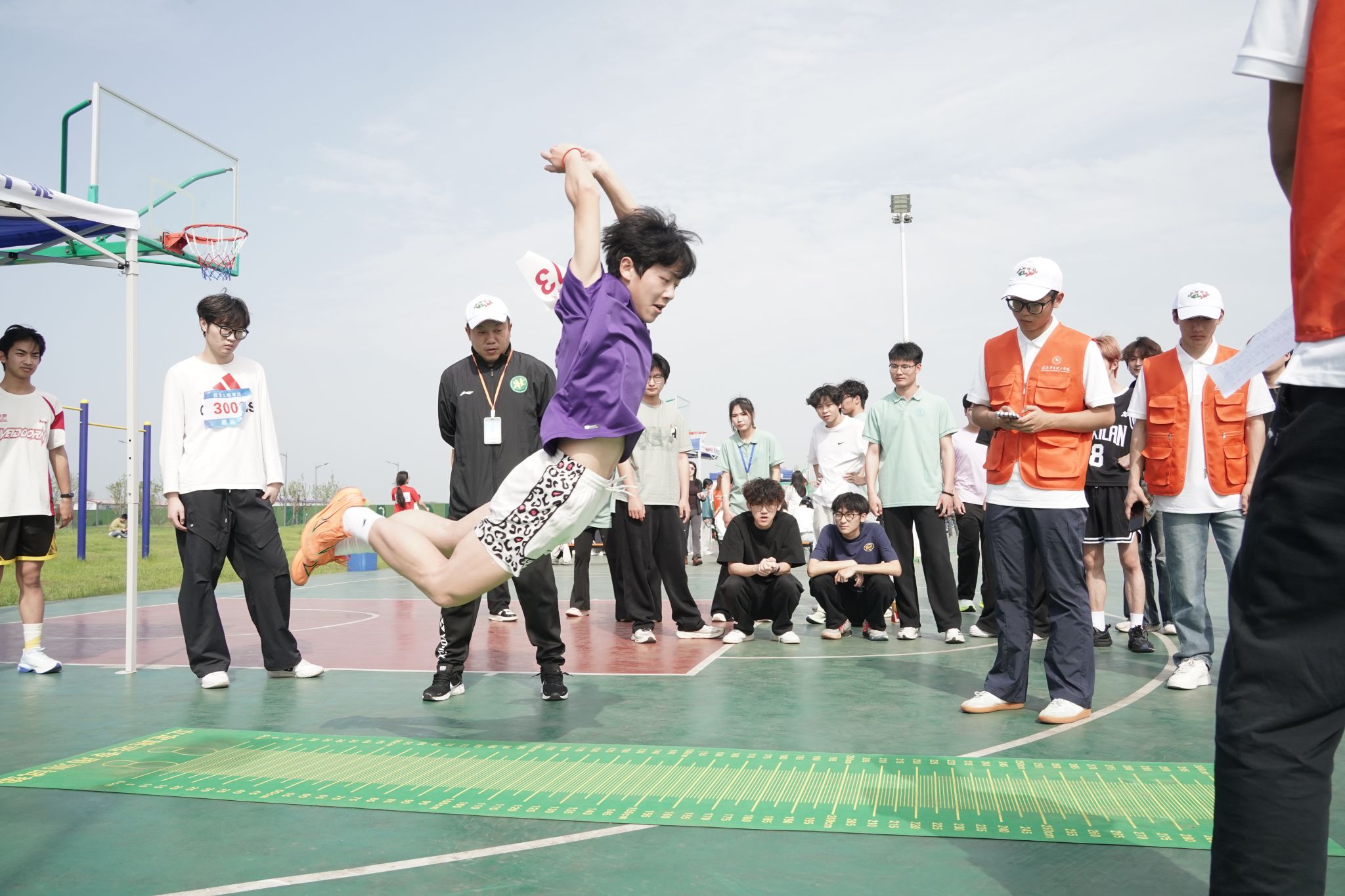 田径场和篮球场上的项目也次第开启。百米跑道上,选手们如离弦之箭,分秒必争;跳远场地上,选手们助跑、起跳、腾空、落地,每一次飞跃都是对极限的挑战;4×100米接力赛中,默契的配合与完美的交接棒,将团队协作精神展现得淋漓尽致。坐位体前屈赛区,选手们伸直双腿,双臂尽力向前推动游标,每一厘米的延伸都是柔韧与耐力的较量;引体向上场地上,运动员们紧握横杆,咬紧牙关,一次次将身体拉起,用力量与意志诠释着不屈的拼搏精神。
