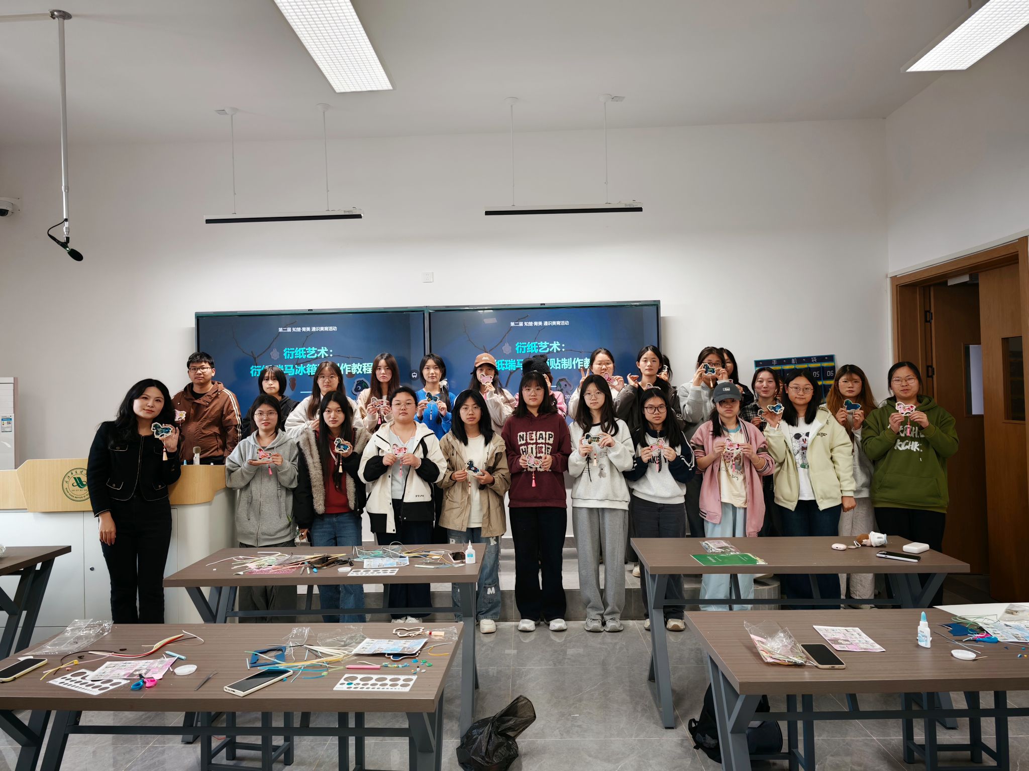 4月24日下午,一场衍纸冰箱贴制作活动在梧桐湖校区B204教室举行。该活动将传统衍纸艺术与通识美育相结合,吸引了在校学生参与体验。