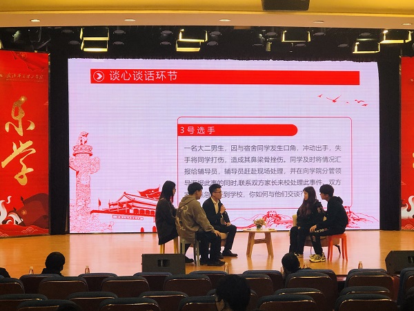 在学生事务部的认真准备、精心选拔和各学院的密切配合和大力支持下,共有来自7个学院的13位辅导员进入决赛。本次大赛重点考察辅导员对本职工作职责的深刻认识,分析、思考、研判、解决学生思政教育工作中相关问题的能力,对教育政策、学生特征、学生成长成才规律的了解把握以及对学生的教育引导能力等。