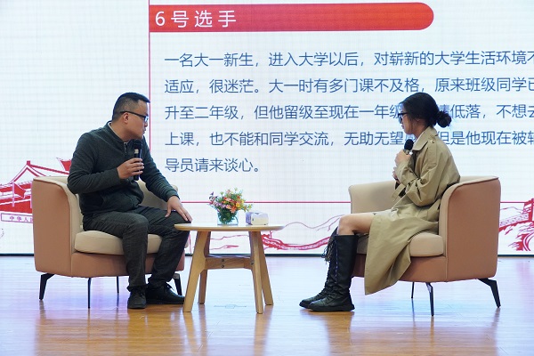 “一名大一新生,进入大学后对崭新的大学生活环境不适应,感到迷茫,导致大一时有很多门课不及格,不想去上课,也不和同学交流,后来我找他谈心……这个案例给我的启示是要多站在学生的角度,真正关心关注每一位学生的成长”、“……大四学生毕业季的普遍焦虑让我深刻意识到职业生涯规划要从入校就开始,这是我育人过程中给自己带来的现实启示……”比赛过程中,辅导员围绕学生寝室矛盾化解、理想信念、班级管理、网困生和学困生、学生情感危机、网贷、班级学风、职业生涯规划、资助育人、网络育人等方面,结合工作期间所处理的类似育人案例,从案例简介、育人过程、育人成效、经验总结、现实启示等方面一一进行了精彩分享。