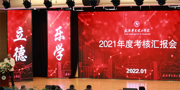 校长郭彪作总结讲话。他充分肯定了学校2021年以来相关工作的成绩,他表示,过去一年学校始终坚持教学型大学、应用型本科教育的办学定位不动摇,建设华夏特色的培养体系不放松,立足学校发展新阶段,构建发展新格局,刻画出了华夏人同心筑梦、聚力前行的惊艳流线。他希望大家在新的一年里进一步振奋精神,为谱写新时代高校教育更加出彩的绚丽篇章贡献华夏力量。同时,他也对大家提出了三点期望:一是推进用习近平新时代中国特色社会主义思想武装头脑、指导实践、推动工作,强化主体责任,激发干事创业活力,增强学校发展的内生动力,着力解决学校发展面临的困难和问题;二是牢牢把握国家和湖北经济发展战略,持续优化学科专业布局,主动对接地方产业发展需求,在协同交叉融合中孕育创新,打造特色鲜明的一流应用型大学,为区域经济建设和国家发展战略做出应有的贡献,奋力蹚出一条“华夏实践”;三是继续围绕学校中长期发展战略和“十四五”规划,坚持稳中求进工作总基调,凝聚共识、克难奋进,大力推进本科教学工作合格评估建设和教学改革,以优异的成绩迎接党的二十大胜利召开。