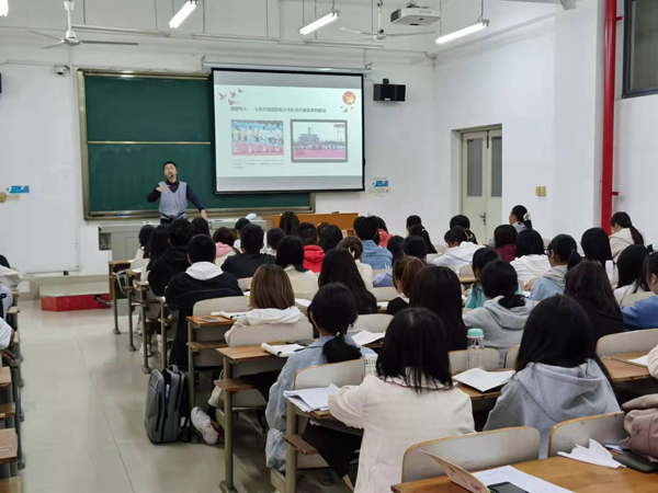 “一百年来,在中国共产党的带领下,一代代中国青年把青春奋斗融入党和人民事业,成为实现中华民族伟大的先锋力量。作为新时代的中国青年,我们要以以英雄为榜样,从他们的事迹中汲取奋进力量,传承他们身上优秀的精神品质。”在3-305教室,土木建筑工程学院张磊老师正在给新生们讲授《思想道德与法治》,他从“七一”7名共青团员和少先队员代表在天安门广场上集体致献词的故事导入,对献词进行了深刻解读,激起了新生们心中的爱国之志。