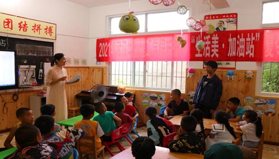 “大哥哥,大姐姐,你们又来了,好想你们!我们一直都盼望着你们过来……”在深山柏香的大山里,一群稚气的小朋友,围着一群充满活力的大朋友深情告白着,当熟悉而亲切的问候再次在彼此耳畔响起时,一切思念与牵挂都化成了幸福的泪花。7月11日,在烟雾缭绕的群山中,夏令营在柏香小学正式开班。柏香村党支部书记、村委会主任王志福参加仪式。