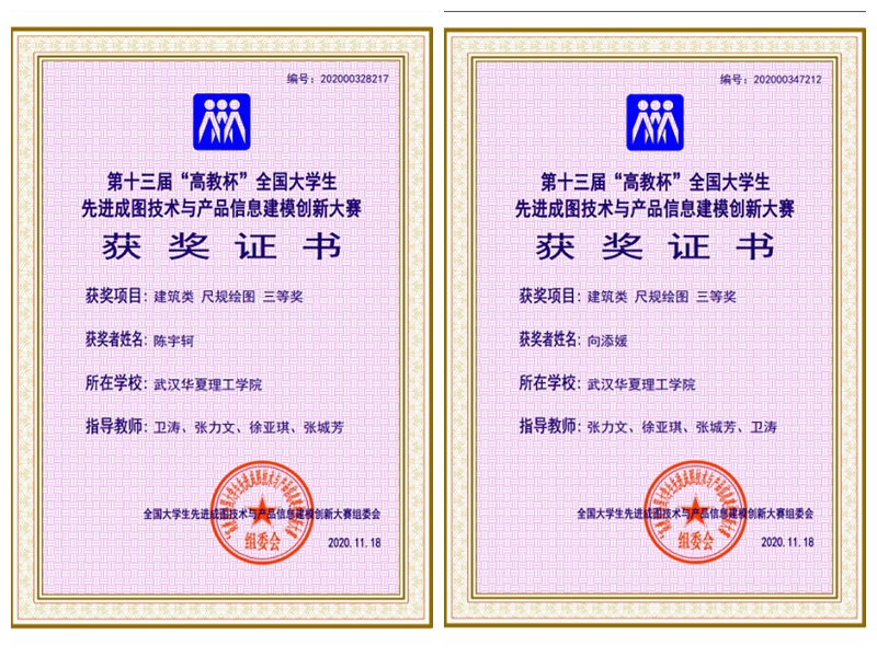 本次比赛得到了校院领导的高度重视,并举行了院内选拔赛。经过评选,向添媛等九位同学脱颖而出,参加国赛。确定参赛名单后,指导老师卫涛便根据学生的专业基础制定了详细的集训安排表,建立QQ交流群督促学生进行有效的训练。参加过阅卷的张城芳、徐亚琪老师根据阅卷经验传授绘图技法,耐心指导学生快速成图。学生们充分利用晚上和周末的时间,认真准备。最终,我校城乡规划专业向添媛、土木工程专业陈宇轲同学分别获得全国尺规三等奖的好成绩。