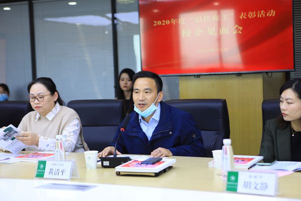 就业指导中心主任李家梁介绍,学校高度重视就业工作,连续多年被认定为湖北处高校毕业生就业统计核查省级免检单位,毕业生深受用人单位和社会各界的好评。他表示,此次表彰大会既是为了向长期支持学校就业工作,尤其是今年与学校加强合作的优质企业表示感谢,同时也通过与企业的互动探讨,积极拓宽学生实习实践渠道及方式,帮助学校准确把握市场最新政策,了解行业最新动向,推动人才培养模式创新,提高学生就业竞争力。