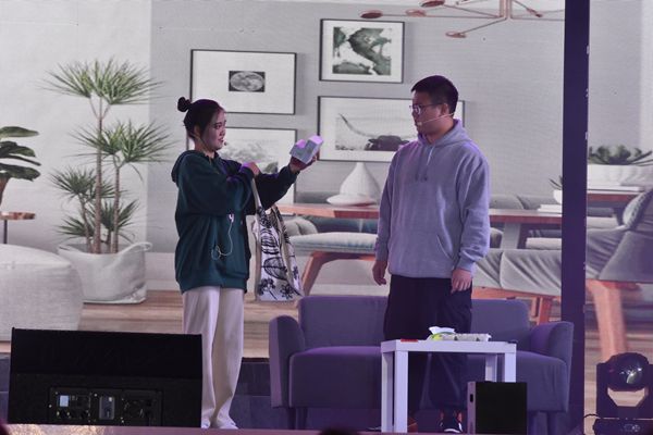 本次晚会设置了三轮现场抽奖环节,现场所有观众对学校以及晚会的寄语都展示在大屏幕的“微信墙”上,主持人从“微信墙”中随机抽取第一轮的幸运观众,通过摄像摇臂随机选取二三轮幸运观众,奖品包括校长签名书籍、蜜雪冰城月票、华夏驾校免费学车以及学校体育馆年卡等,在场观众积极参与,现场惊喜不断。此外,本次晚会还开通网上直播,有近万人观看了同步直播,效果显著。