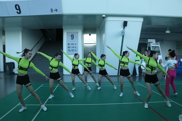 备赛期间,团队指导教练,赵燕和付金鑫,与全体成员牺牲掉自己平日里的休息时间,全身心地投入到备战之中,以往每周两次的常规训练也增加到六次之多。往常队员们九点就结束了训练,为了在赛场上能有更好的团队表现,近十点,训练室里依旧灯火通明。老师耐心地一一为队员们纠正动作,即使是带着一身疲惫离开训练室,也没人喊累。