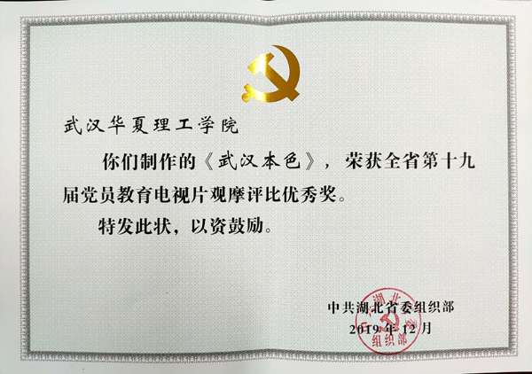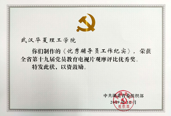 近日,由中共湖北省委组织部举办的全省第十九届党员教育电视片观摩交流活动评审结果揭晓,我校选送的《武汉本色》、《矢志不渝,砥砺前行——柏香村乡村振兴专题调研》、《优秀辅导员工作纪实》等三部作品荣获优秀奖。获奖的作品将在荆楚旗帜网、全省远教IPTV平台、湖北广播电视台《旗帜》栏目、《党员生活》微信公众号进行集中展播。