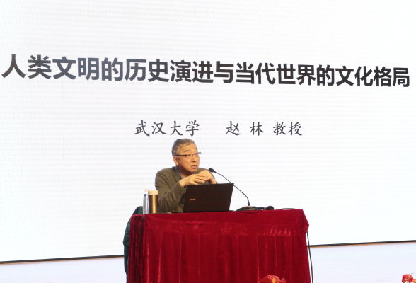讲座伊始,赵林教授首先从游牧民族对世界的冲击与影响为切入点,简明扼要的展开了人类文明的发展历程。他介绍道,人类文明的发展历程可分为三个阶段,分别是古代文明、古典文明和四大文明体系。