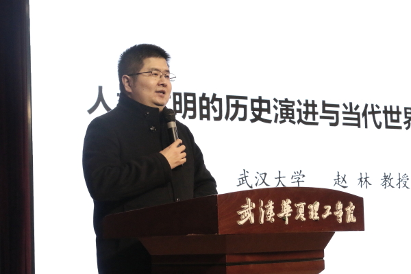 12月19日晚,由国家教学名师、武大“名嘴”赵林教授主讲的《当代国际格局背后的宗教背景》通识教育讲座在学术报告厅举行。执行校长郭彪,常务副校长杜辉,师生代表800余人参加。讲座由郭彪主持。