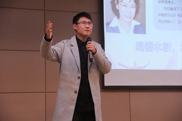“我们要勇敢,我们要自信,我们要敢于不一样,所以我们要思考、要实践,不必仰望他人自己亦是风景。”金融1193的黄玉慧以“创造属于自己的人生节奏”为题,结合当代大学生普遍存在着对自身如何定位的问题,呼吁大家认识自己的优势,创造出属于自己的人生节奏,展示属于大学生的良好精神风貌。