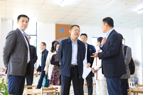 杜辉首先向来宾详细介绍了学校的办学历史、办学规模、发展概况、学科特色等情况。在当代教育·武汉华夏理工幼儿托管中心,来宾们详细考察了托管中心的功能分区,并深入了解了托管中心的教育理念、管理制度及运营状况等情况。当得知托管中心是当代教育集团和学校为教职工“定制”的一项福利,并借此打造多学科产教融合实训基地时,金城表示赞许。
