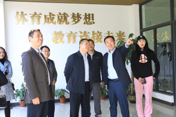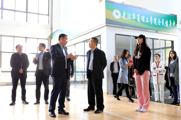 随后,来宾一行对我校体育学院进行了深入调研。休闲体育专业教师宁梦茹就体育学院发展历程、师资力量,休闲体育专业课程设计、学生实践平台,校企合作以及师生参加体育竞赛获奖情况等进行了详细介绍。李巍围绕全民健身中心建设,全实木室内篮球馆、羽毛球馆的设计等方面与来宾进行深入探讨。