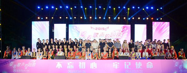 民族舞蹈《锦绣中华》,身着56个民族服饰的舞者在恢弘磅礴的旋律中,婆娑起舞,神形兼备的将民族舞蹈的精髓完美演绎,展现了中华舞蹈文化的绚丽与多姿 ;最后,《乘着歌声的翅膀》的优美歌声中,我校2019年迎新晚会正式拉下帷幕。